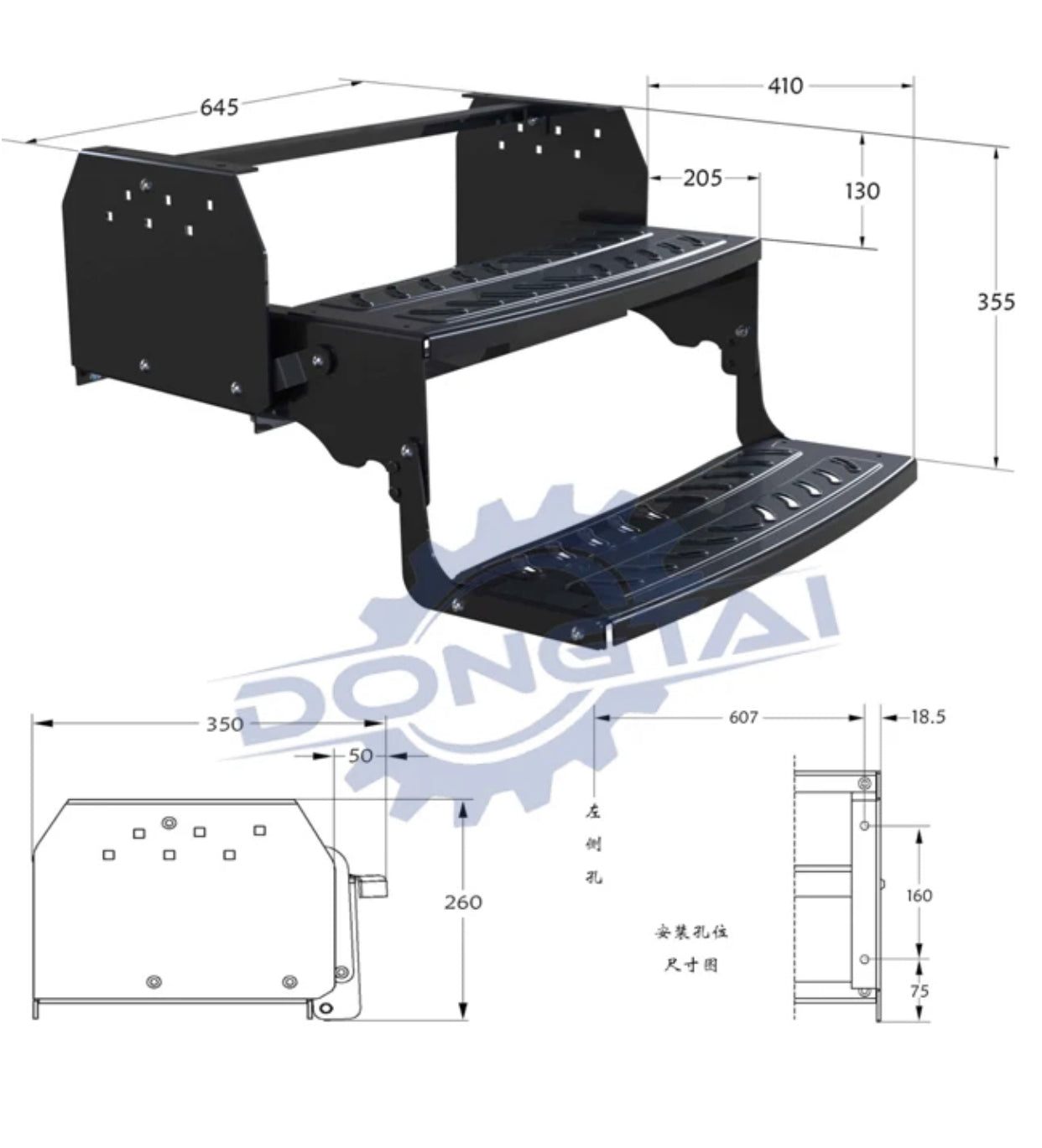The bolt hole pattern fits all major competing brands for easy replacement of existing steps.