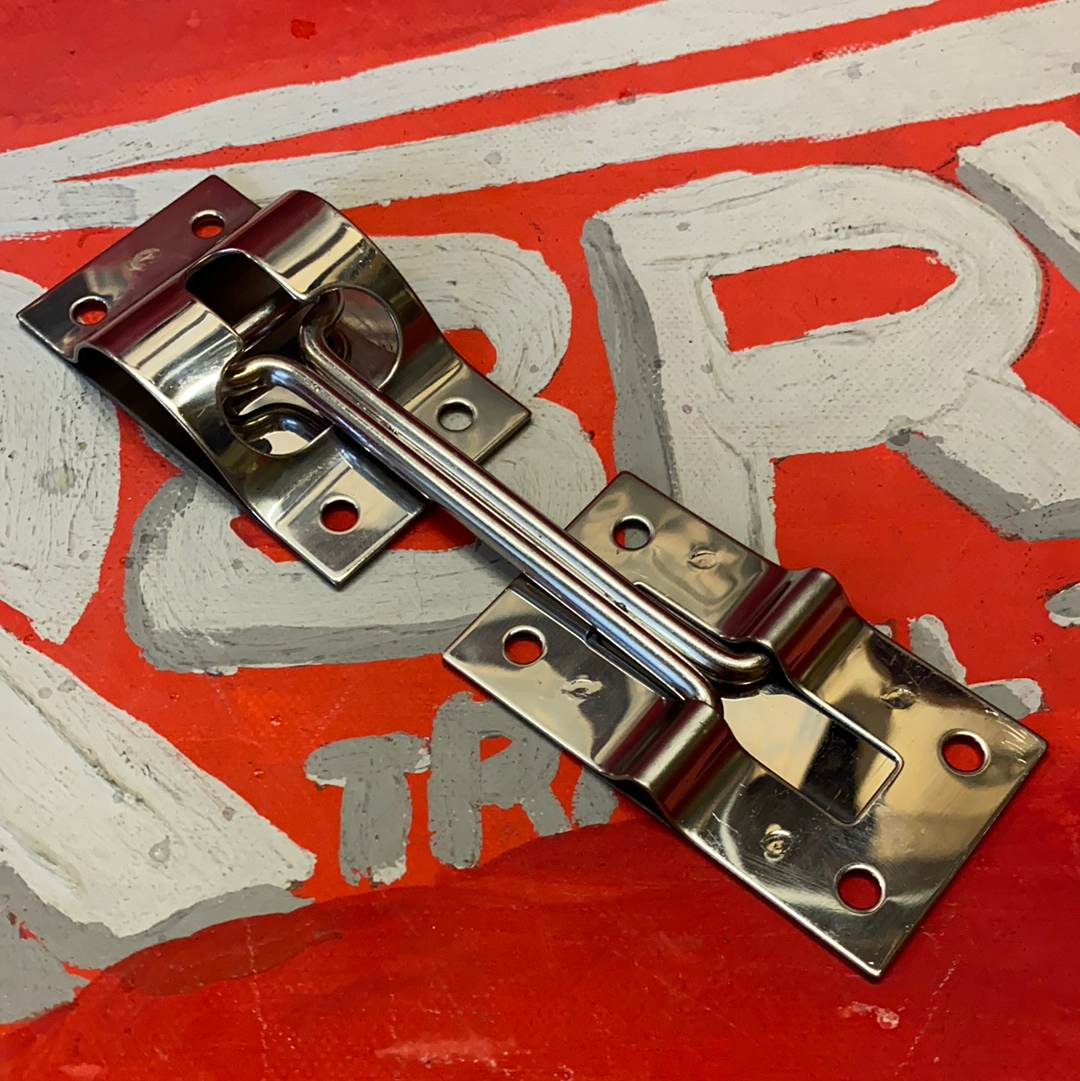 - 4" long arm, mounting bases are 3" by 1-3/4"; Trailer T-Style Door Catches