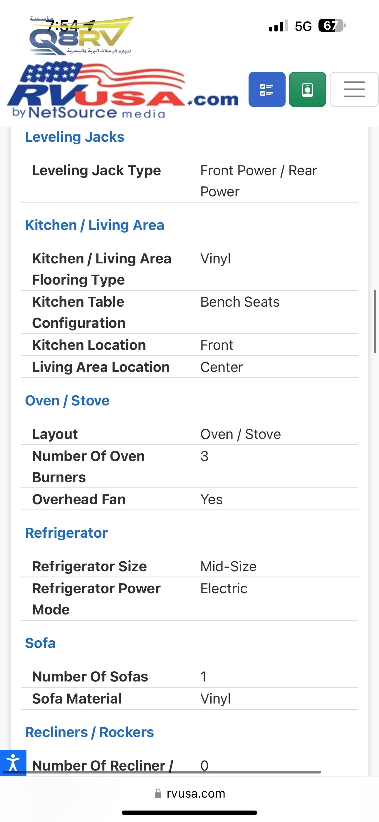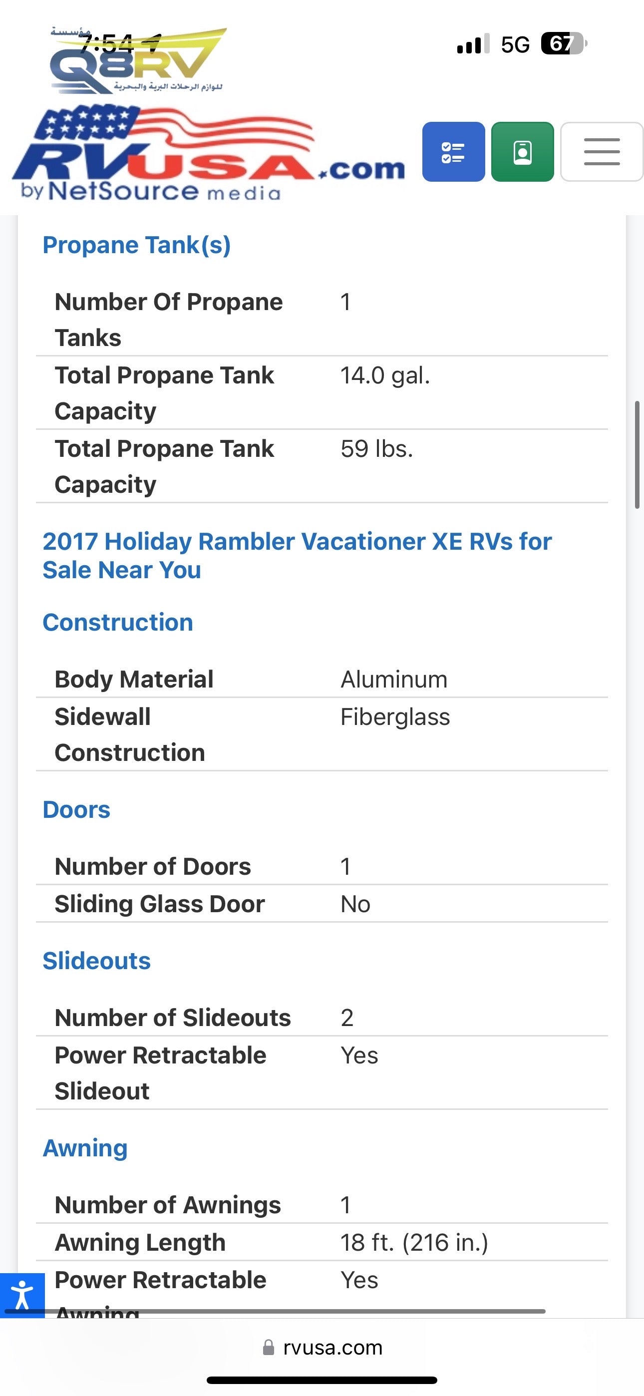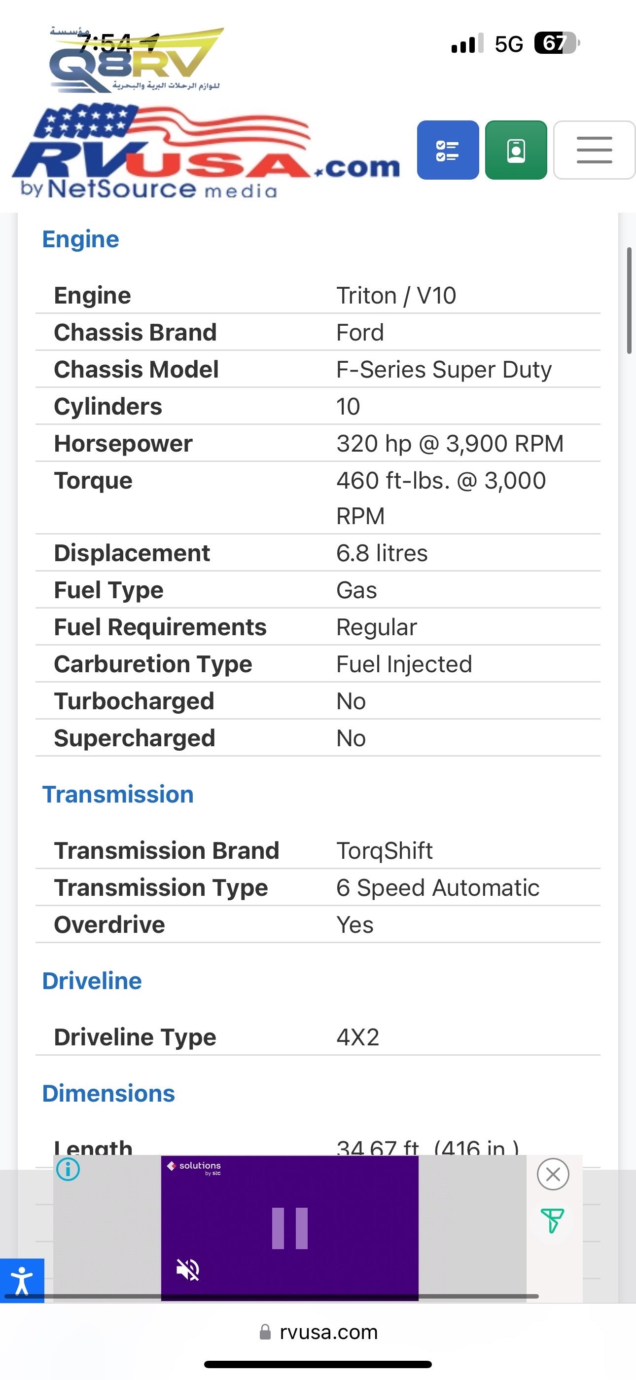 : للبيع كرفان أمريكي كلاس A ( موتر هوم)