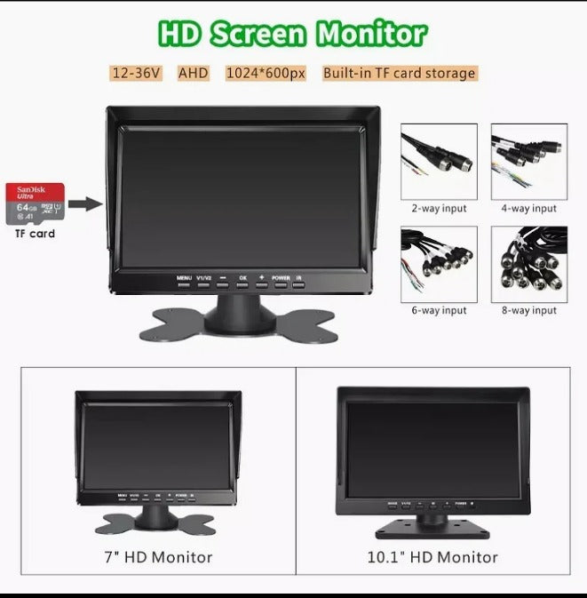 7 Inches touch screen with four cameras with DVR and USB interface, and recording Bluetooth and MP5 player