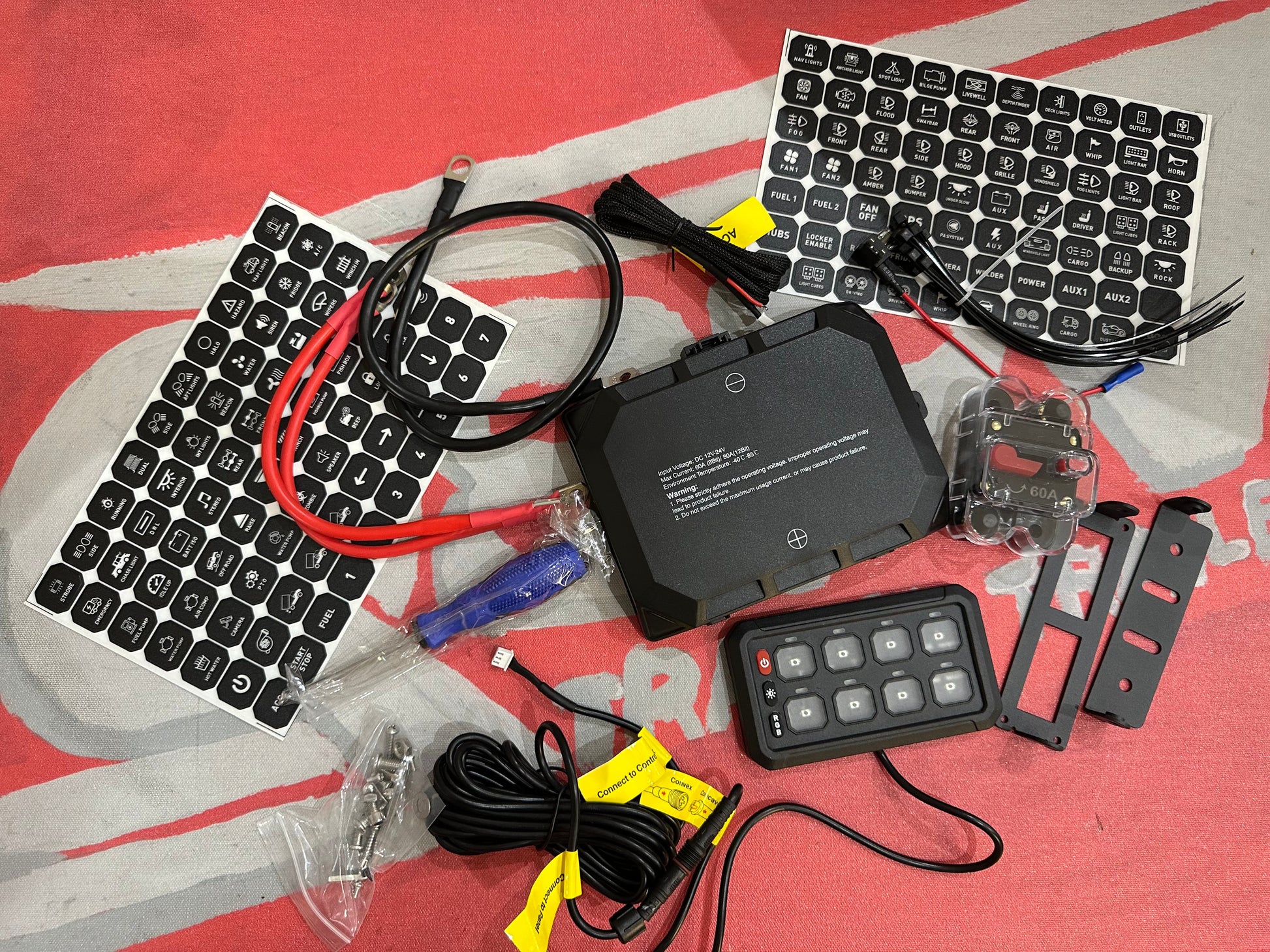 (1) RV 2 gang 12 volt light switch  -Cover snaps over switch base plate for a clean look and easy installation and service  -Includes 1 switch base and cover with on-off switch's (as shown) -Overall Size: 3" wide x 2- 7/8" tall x 3/8" Deep -Minimum hole cut out size 1-1/2" tall x 1-3/4" wide