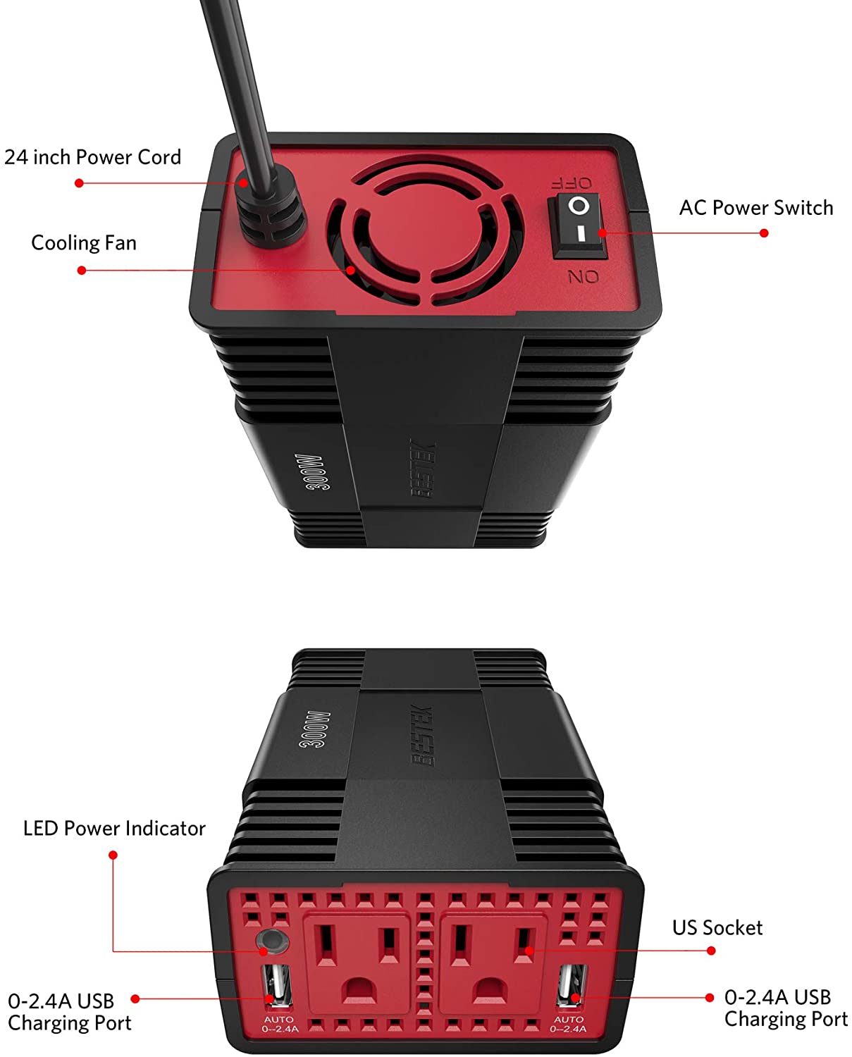 Ultra compact design makes the power inverter easy for storage and won't occupy much space when connecting it on your car center console.
