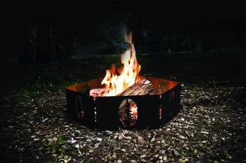 Safely contain your campfire with Portable Campfire Ring. The large, 27 inch wide steel ring will accommodate your natural wood-burning fire. Unfolds and assembles easily with no tools required. Tree cut-outs create a captivating ambiance. Storage bag included for easy transportation.