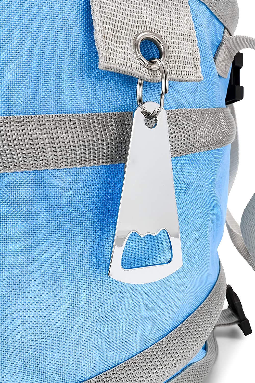 Features a zippered lid, carry handles, and buckle strap to keep flat when not in use and bottle opener also included