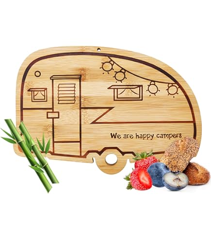 Life is Better at The Campsite Retro RV Shaped Bamboo Wood Cutting Board for Food Prep-Doesn't Dull Knives, Resists Moisture and Has Antibacterial Properties