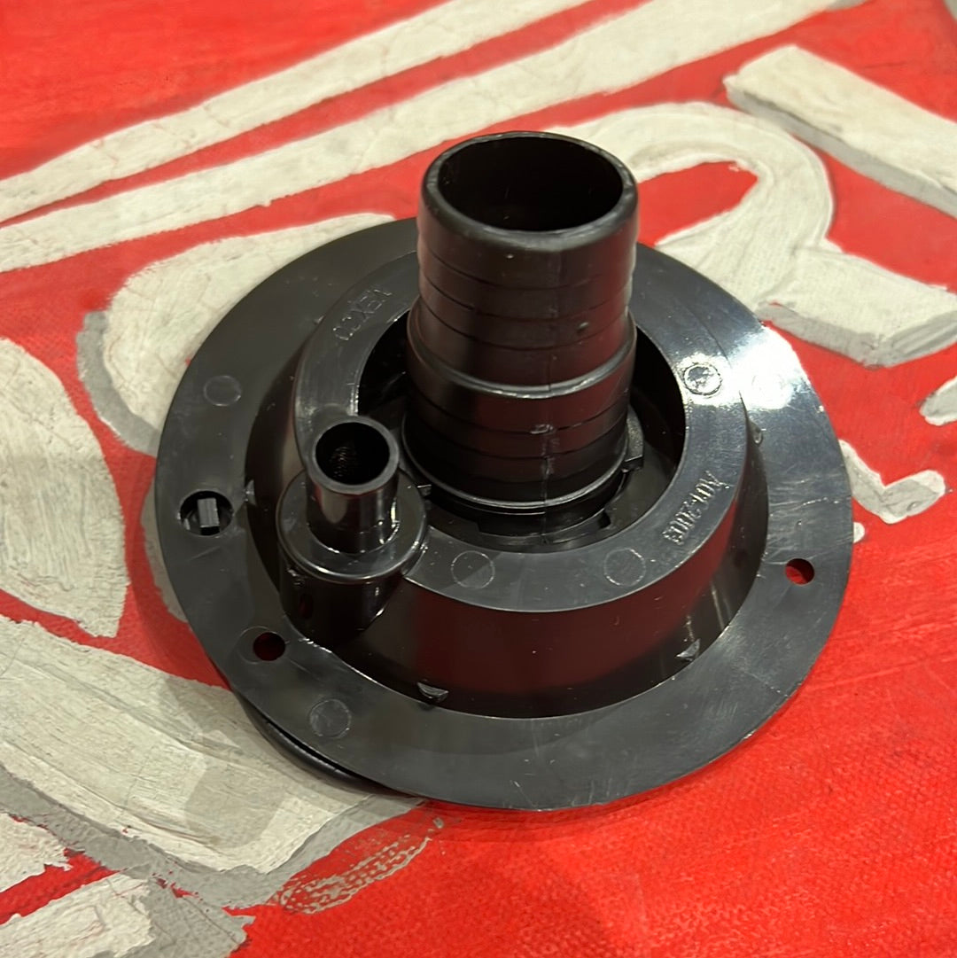 Gravity Water Dish is a direct OEM replacement that accepts either 1-1/4" or 1-3/8" water fill hoses. It contains a tank vent connection and Is UV, impact and road salt resistant. Cutout diameter: 3-1/2". Outside diameter: 4-3/4". Dish depth: 3/4". Spout depth: 2-1/2".