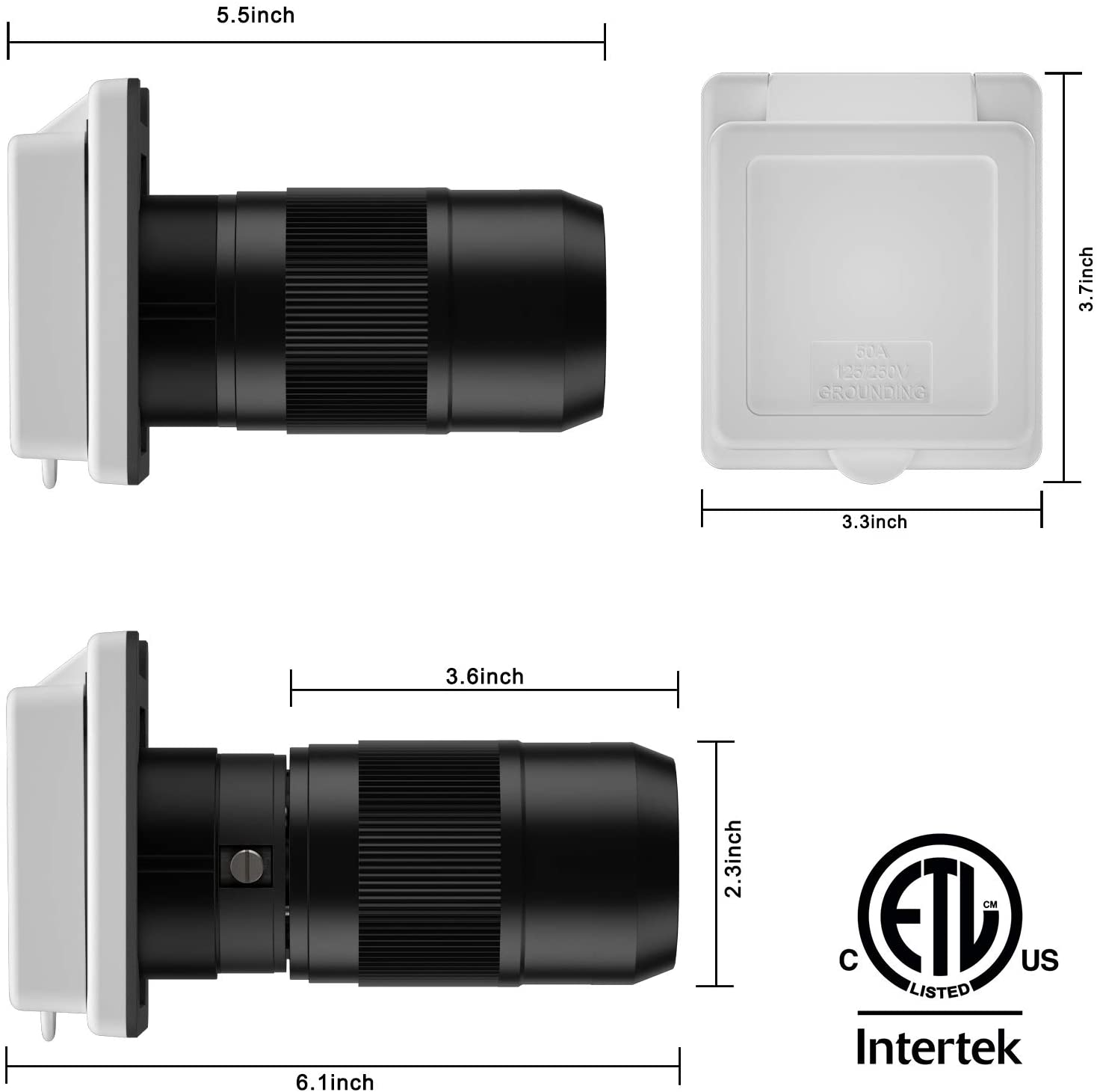 • ETL APPROVED: Kohree 50Amp 125/250V RV Marine Shore Power Inlet, 3 Poles, 4 Wires, Flanged Inlet, Nonmetallic Inlet.