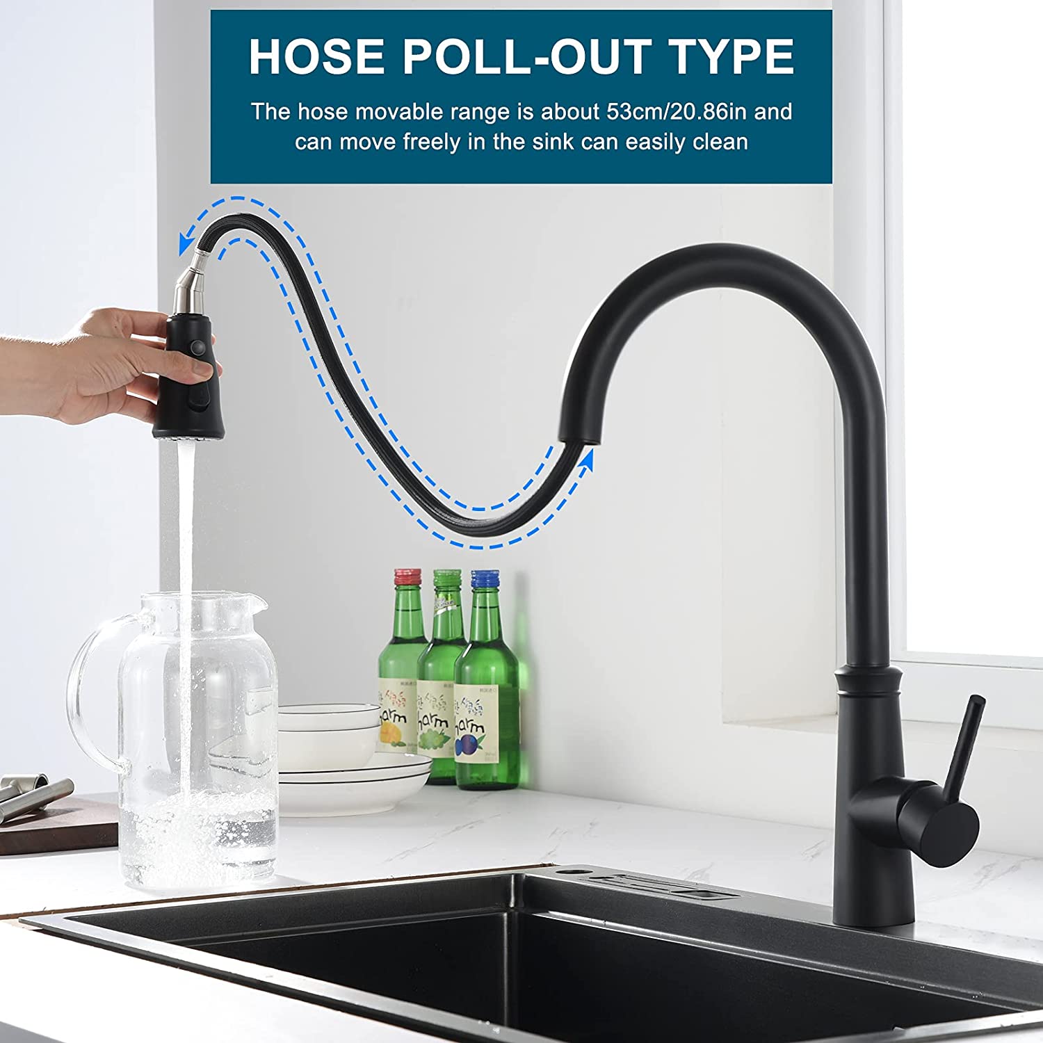 Pull Out Kitchen Faucet Black خلاط مطبخ