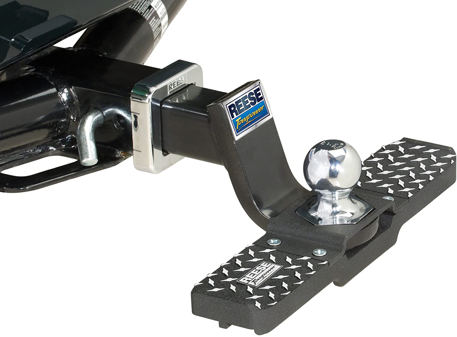 High quality constructed step accessory that fits interlock and traditional twin wrench flats to Reese Towpower ball mounts