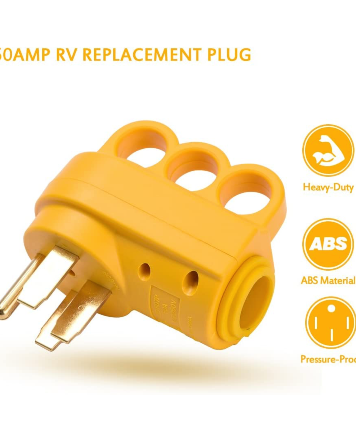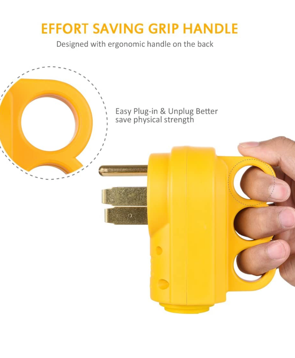Rated at 125/250V 50A, with ergonomic grip handle on the back. Easy to plug in and unplug, better energy saving. Perfect for your RV, Camper, Caravan, Motorhome, Trailer or other vehicles.