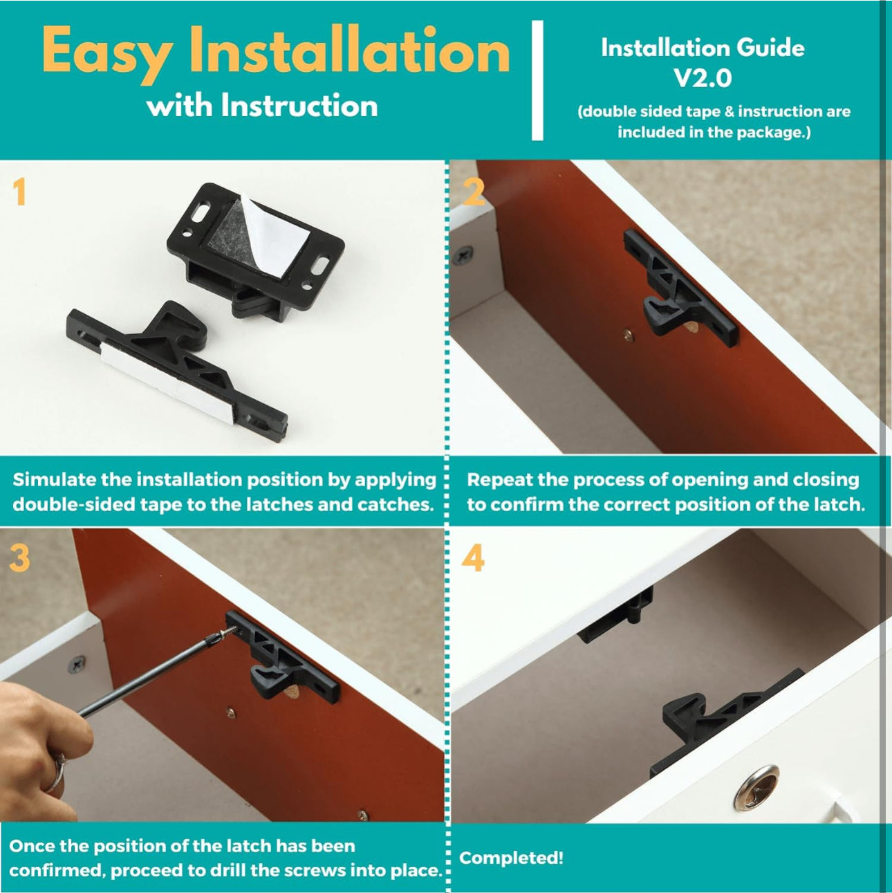 RV Cabinet Door Latches and Catches, 10 LBS Pull Force Latch for RV Camper Motor Home Trailor Office Cabinet Drawer, with Mounting Screws and Double-Sided Tape