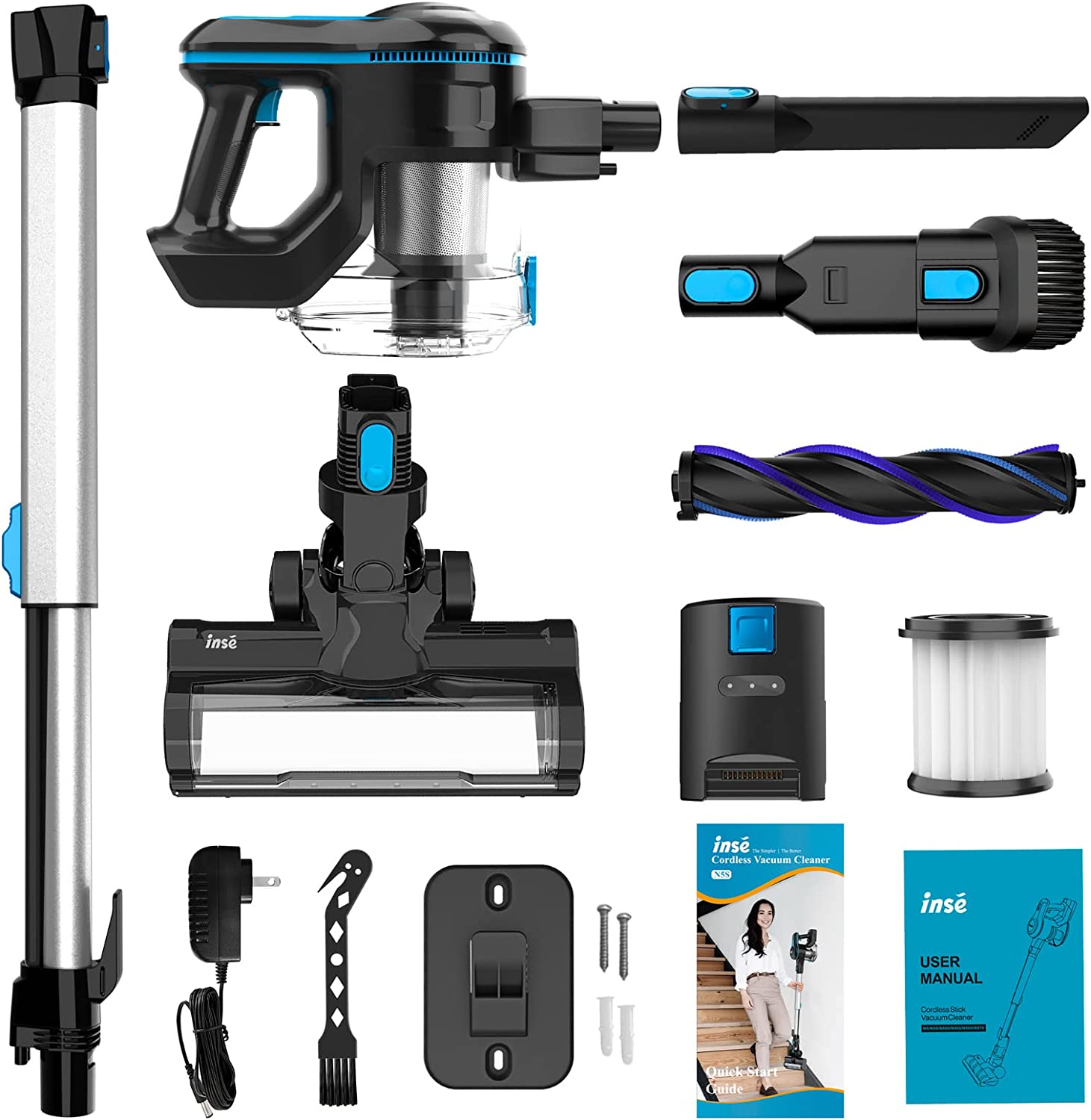 INSE Cordless Vacuum Cleaner 6 in 1 Stick N5 Blue مكنسة